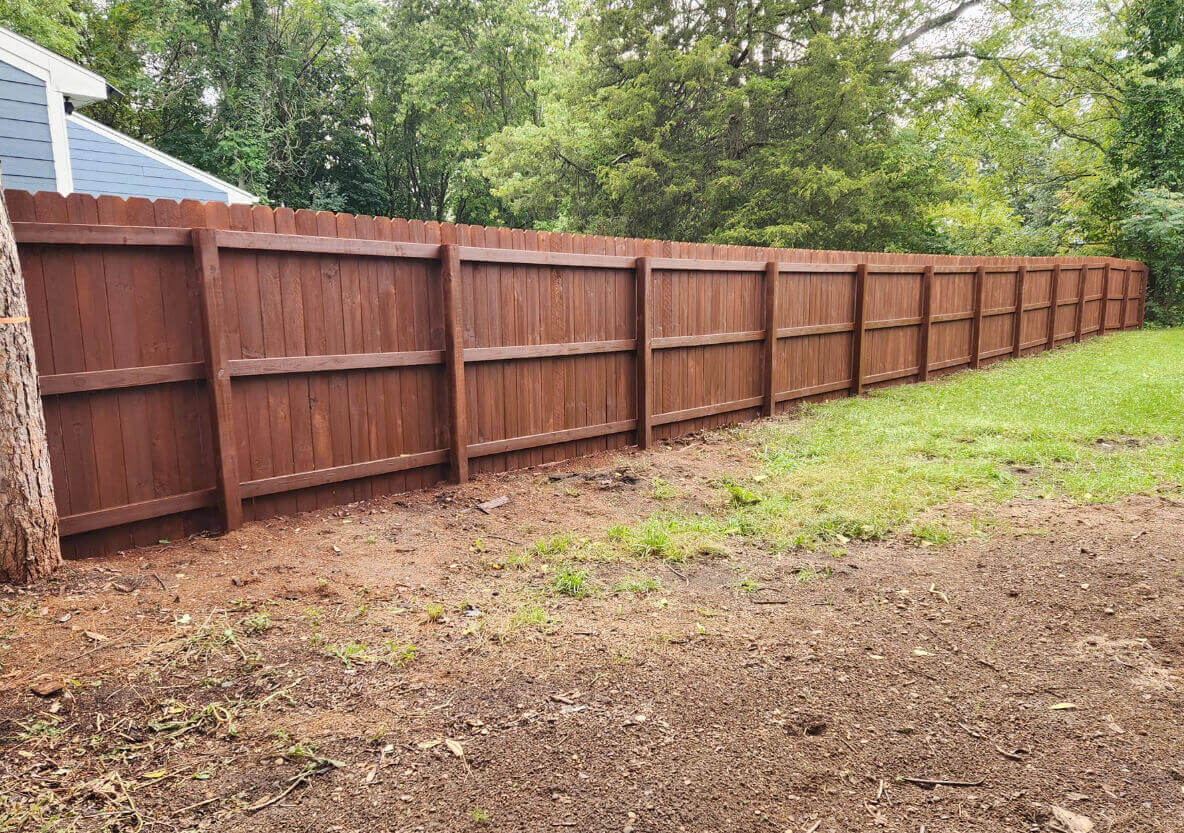 While we build every new wood fence expertly, the final look homeowners dream of comes from staining. Adding colored layers of wood conditioner gives your fence a bright, vibrant look, rich grain, and a stunning finish. Staining is also a critical part of wood fence care that prevents rot and damage from the weather elements.